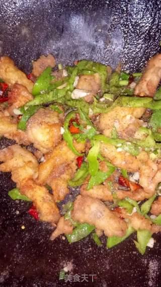 - 将腌制好的鸡放入锅中,翻炒至鸡肉变色。